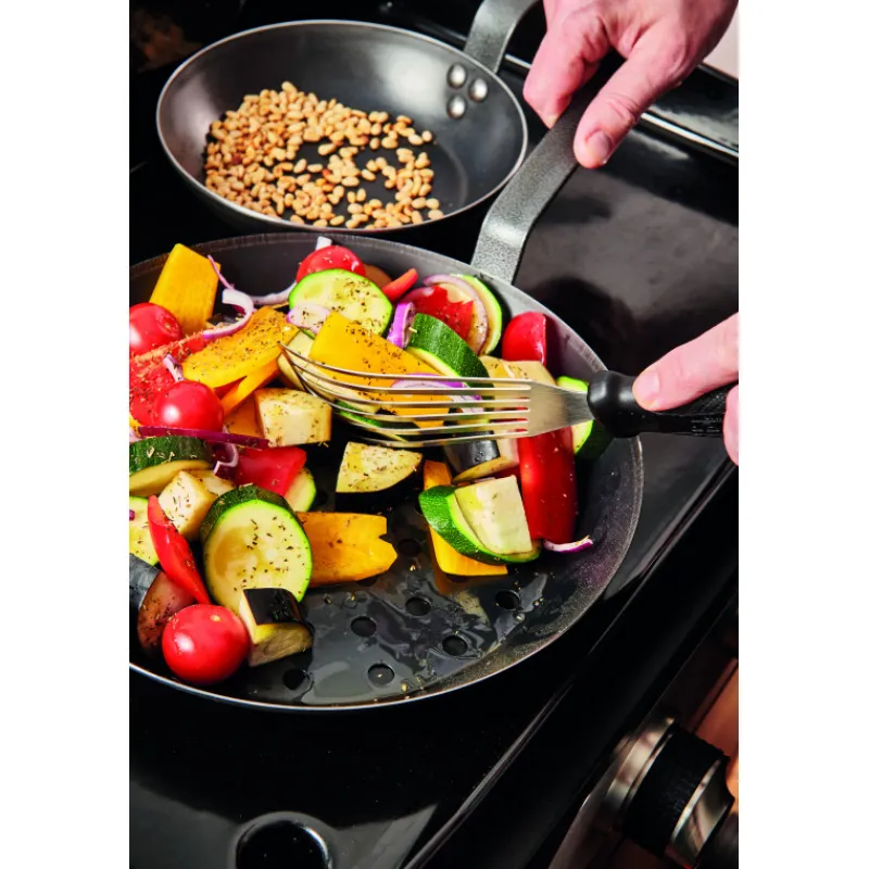 Compatible tous feux, y compris induction après un bon culottage et une montée en température progressive, cette Poêle Tôle d’Acier Bleue Ø 32 cm a été pensée pour une utilisation tout terrain. Ainsi cette Poêle à Frire naturellement anti adhérente grâce au carbone sera idéale pour vos soirées d’été et vos repas en plein air !