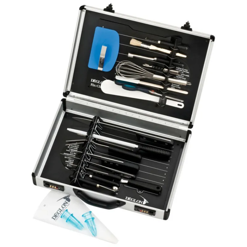 La Mallette de cuisine professionnelle Grand modèle 25 pièces comprend tout le matériel nécessaire dans une malette Aluminium grand modèle, de la marque Déglon.