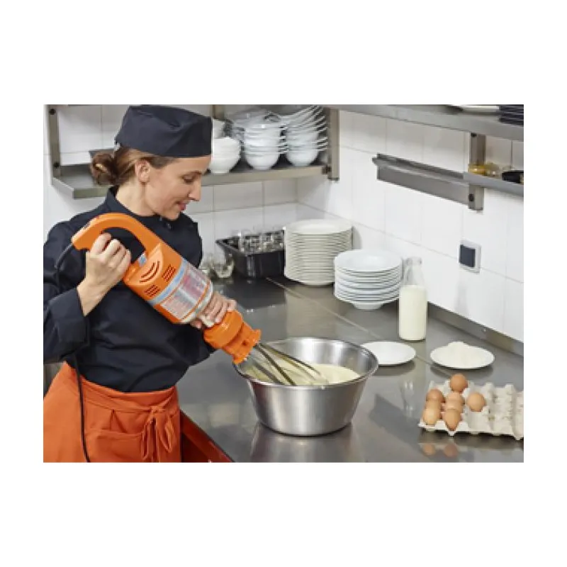 En un geste, transformez le Mixeur Plongeant Master Combi 410.H Dynamic en un batteur électrique professionnel. Chaque accessoire peut travailler respectivement 40 à 100 litres et 10 à 20 litres. Le pack mixeur plongeant batteur Master Combi 410.H Dynamic se compose d’un bloc moteur BM Master, d’un pied M 410 et d’un fouet Master. Le bloc moteur est compatible avec de nombreux accessoires, ce qui en fait un ustensile évolutif qui s’adapte facilement en fonction des besoins du moment.