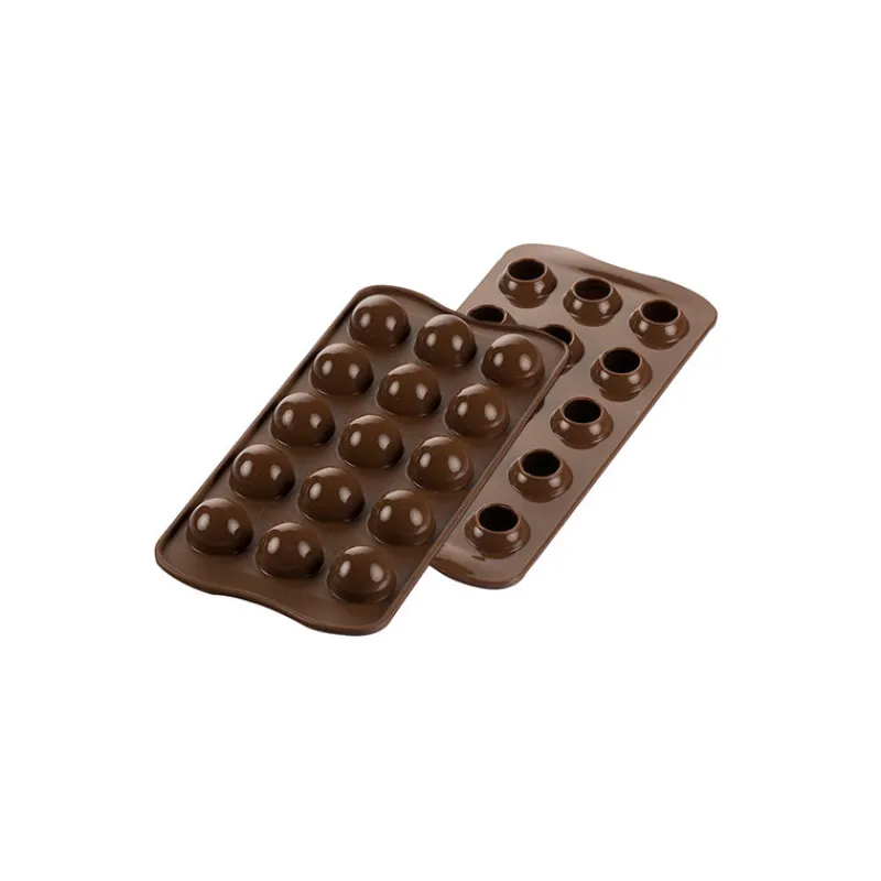 Réalisez des Truffes au Chocolat en toute simplicité grâce à ce Moule Silicone Spécial Chocolat. Comportant 15 empreintes, vous obtiendrez des sphères en chocolat de 2,7 cm de diamètre et d’une hauteur de 2,4 cm.