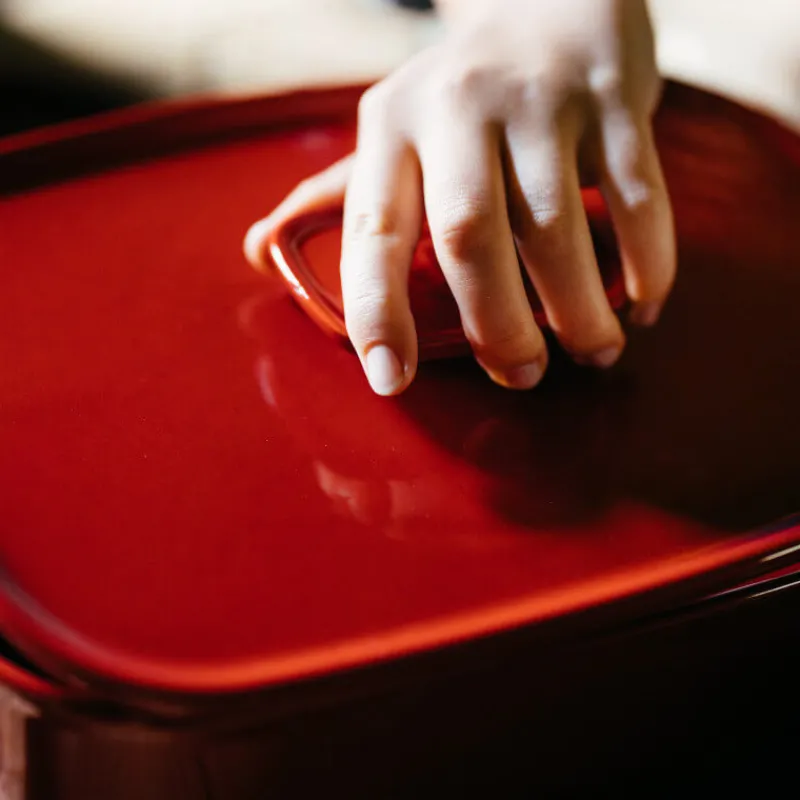 Il a des accessoires qui deviennent vite nos indispensables en cuisine, c’est le cas de ce couvercle pour plat à four Emile Henry.