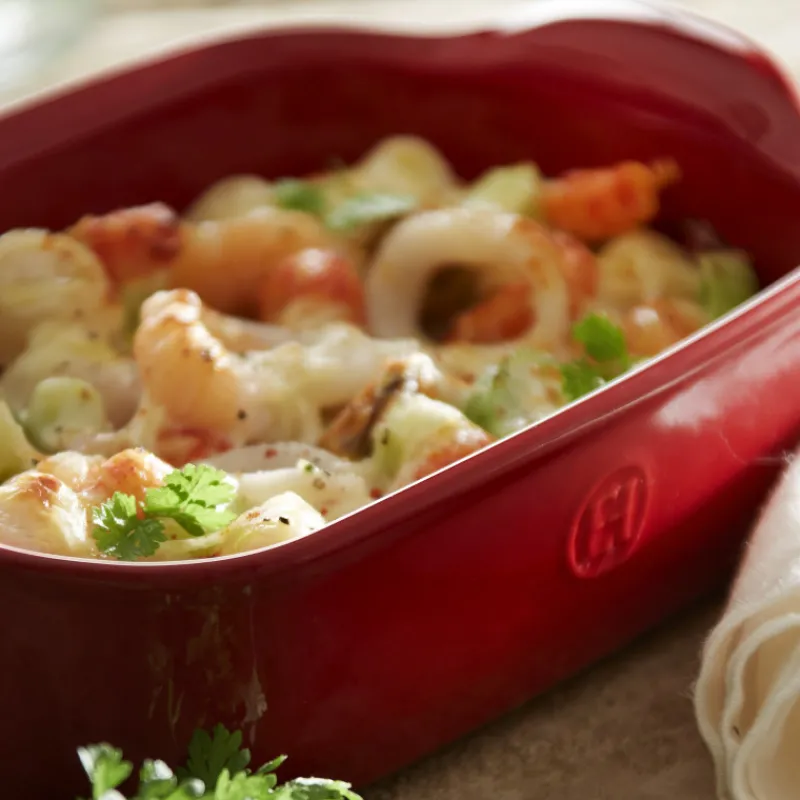Le Plat à Gratin Emile Henry, Made in France, sera votre principal atout pour cuisiner de délicieux plats tels que des gratins, tians ou encore des lasagnes bien épaisses. En effet, le Plat à Four garanti 10 ans, est profond ce qui permet d’éviter toute éclaboussure lors des vos préparations maison. Grâce à sa céramique Haute Résistance, matériau excellent comme diffuseur de chaleur, votre cuisson sera homogène et douce pour un résultat épatant.