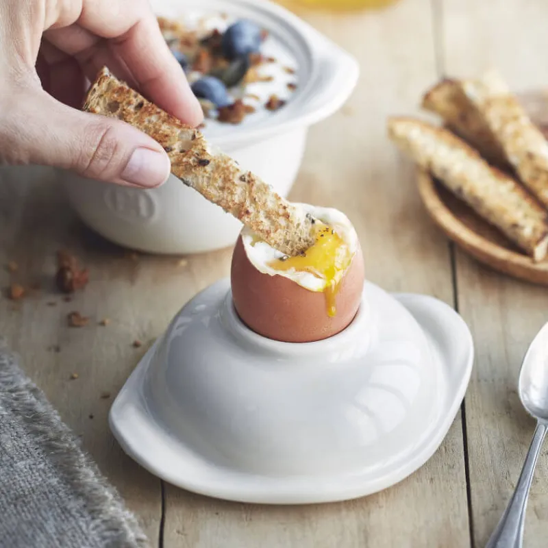 Il y a des saveurs simples que l’on aime à retrouver mais aussi à réinventer. C’est ce que propose de faire Emile Henry avec « L’Œuf ». À la fois mini cocotte et coquetier, ce petit plat en céramique est l’occasion de créer de nombreux plats et de composer des menus à la fois variés, rapides et savoureux.