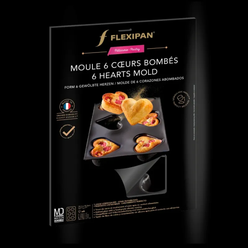 Moule Silicone 6 Cœurs Bombés 7,5 x 6,5 cm Flexipan Demarle