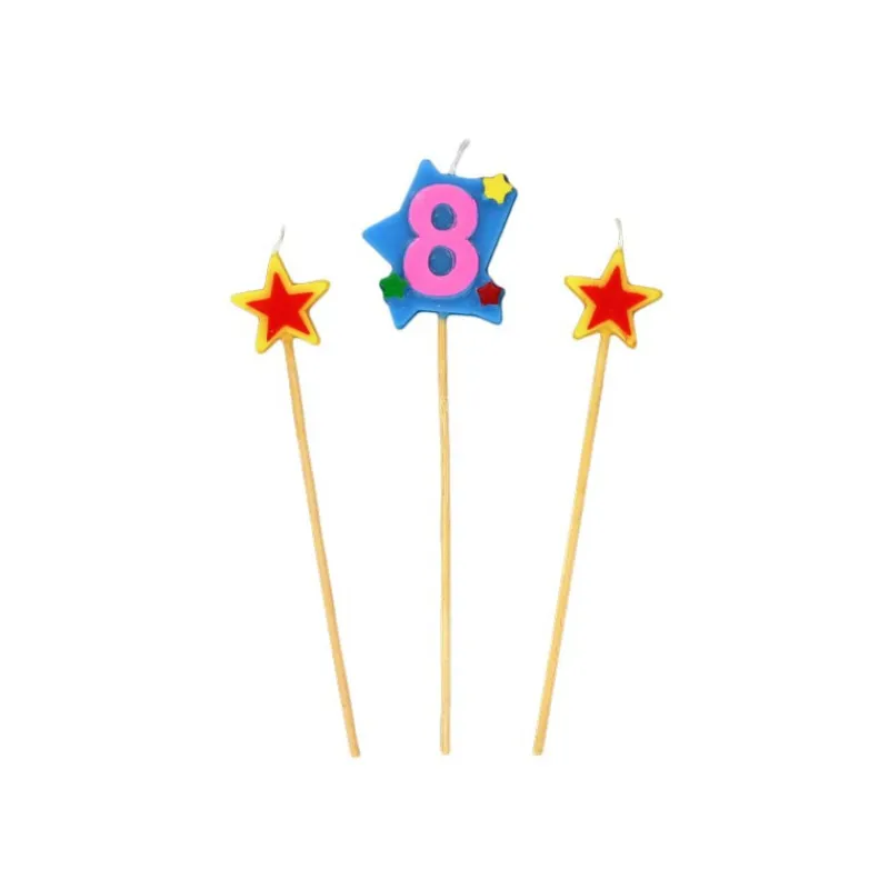 - Conditionnement : Lot de 3 Bougies (1 Chiffre + 2 Étoiles)