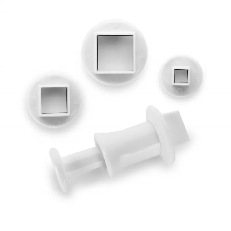 Chacun des Emporte-Pièces Carré possède une taille différente : 6, 10 et 15 mm. Équipés d’un poussoir, vous obtiendrez des carrés de pâte à sucre parfaits en un seul geste.