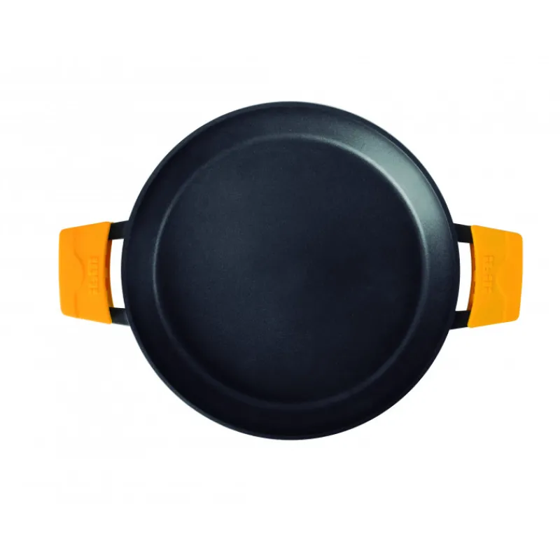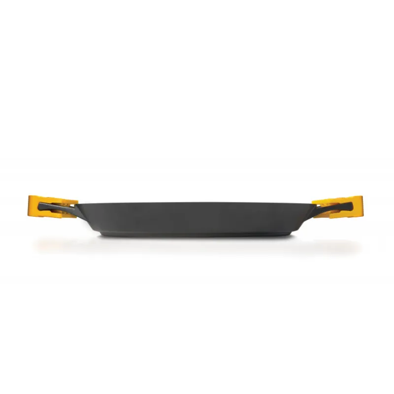 Faite en fonte d’aluminium, cette Poêle à Paella revêt 3 couches anti-adhérentes, évitant à vos aliments d’accrocher dans le fond de votre poêle. De plus, cette Poêle en Aluminium possède des anses amovibles, qui s’avéreront utiles pour amener votre plat à paella sur la table, sans vous brûler les mains.