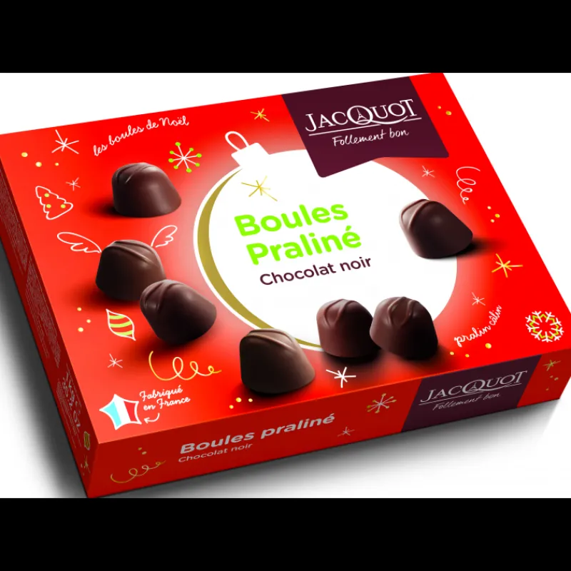 Cette boîte de succulent Chocolat Noir Praliné est un indispensable pour passer de délicieuses fêtes de fin d’année. Idéales à partager ou à déguster tout seul pour les plus gourmands, les boules pralinées Jacquot sauront apporter du réconfort et de la gourmandise dans votre foyer.