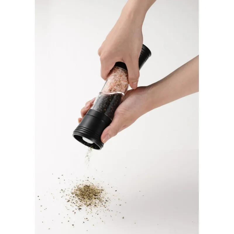 Le moulin universel réglable 2 en 1 est composé de deux réservoirs transparents distincts, dotés d’un mécanisme en céramique chacun. Ce Moulin Universel va vous permettre de moudre toutes vos épices et condiments : sel, poivres, épices, baies et même les petites graines (graines de sésame, graines de lin, etc…).