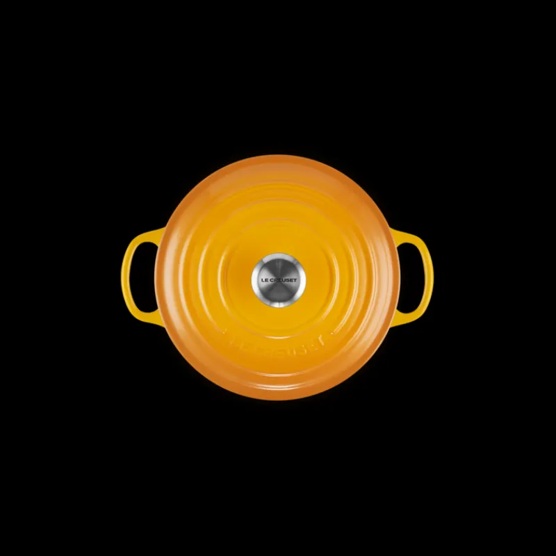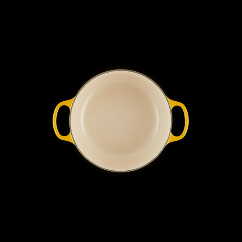 - Revêtement émaillé : simplicité de nettoyage de la Cocotte Ronde Jaune Nectar et plus grande résistance aux rayures.