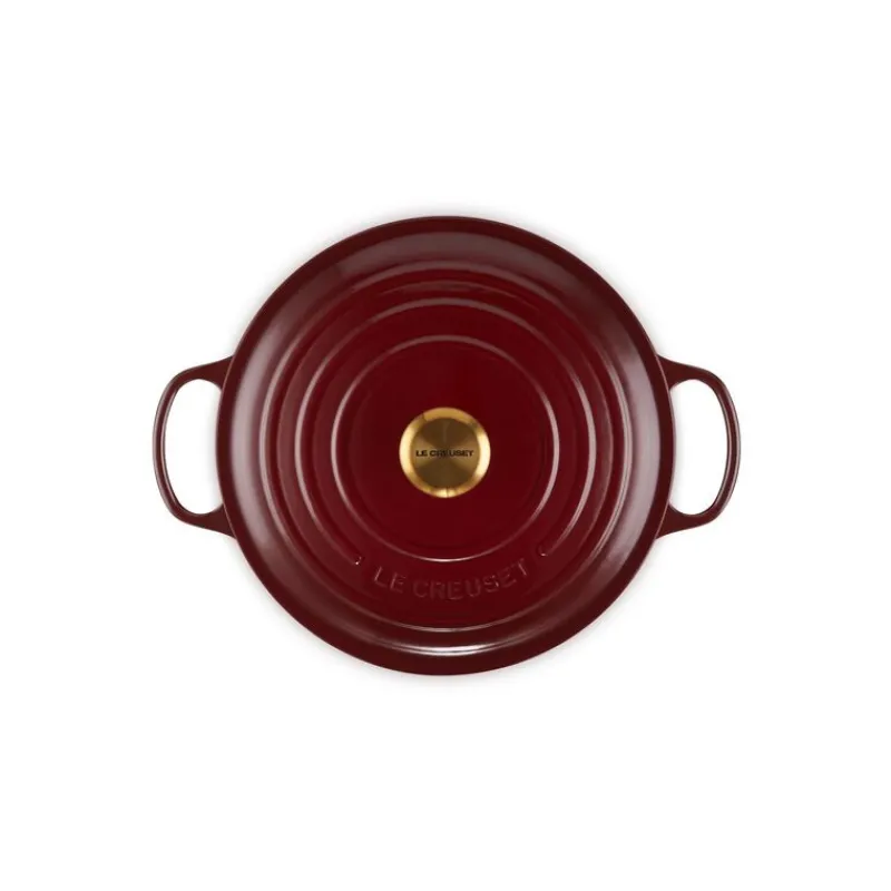 Cocotte en Fonte Ronde 28 cm Garnet Bouton Doré Le Creuset Signature