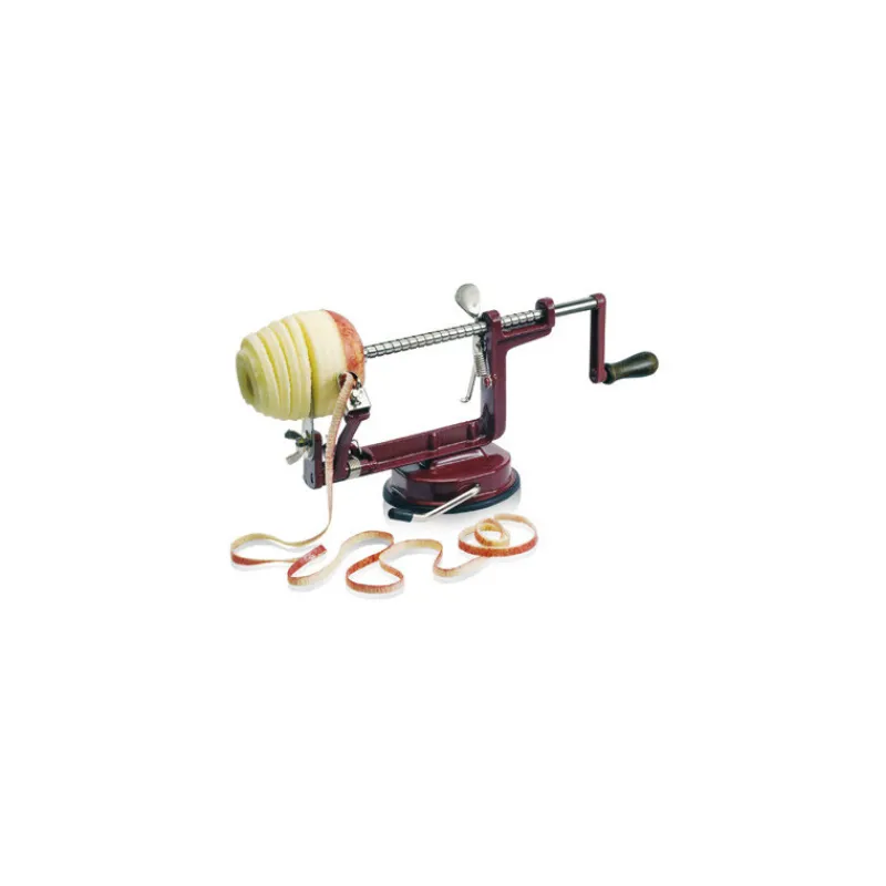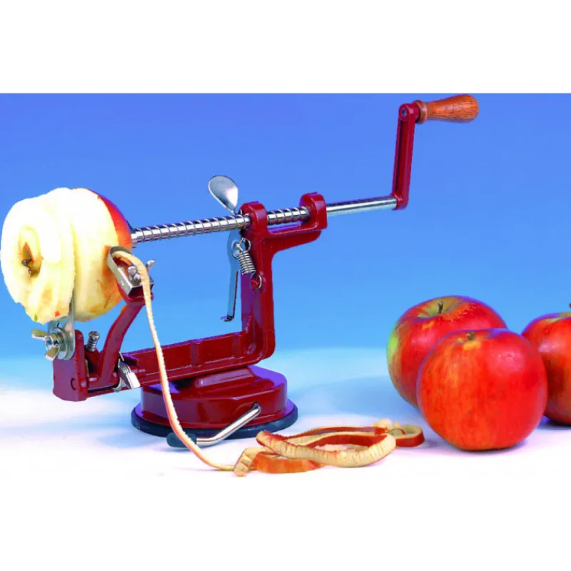 Pèle pommes : épluche, tranche et vide la pomme en une seule opération. Peut être utilisé pour éplucher les pommes de terre et les trancher (chips…)