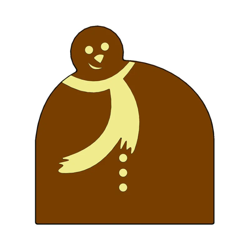 L‘Embout de bûche Bonhomme de Neige Mallard Ferrière vous permettra de réaliser les dernières finitions sur votre bûche de Noël avant de la servir à table. Faites couler du chocolat dans les empreintes du Moule Embout de bûche pour réaliser deux plaques en chocolat à disposer sur les extrémités de votre bûche pour terminer la présentation ou pour garder la garniture de votre bûche cachée jusqu’à la découpe de celle-ci lors du service à table. Vous pouvez jouer sur les couleurs du chocolat noir et du chocolat blanc pour laisser apparaître le Bonhomme de Neige, en disposant un peu de chocolat uniquement dans l’empreinte du personnage, puis en recouvrant le tout par du chocolat d’une autre couleur.