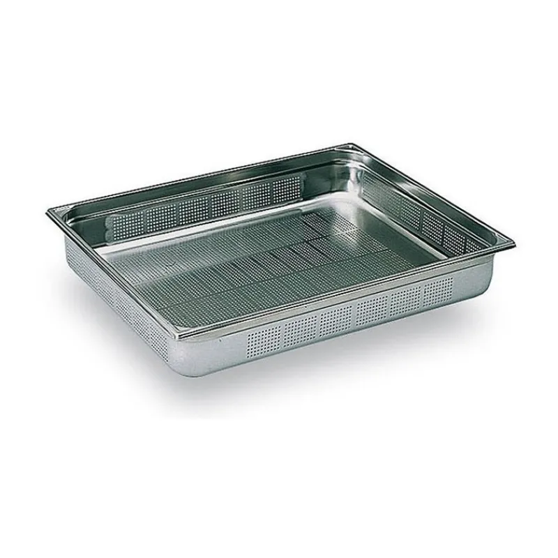 Photo non contractuelle, le Bac Gastronorme Perforé GN 2/1 H 5.5cm ne possède des perforations que sur le fond.