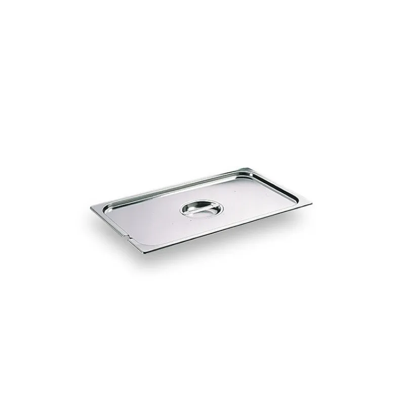 Le couvercle pour bac gastro dispose d’une encoche : ainsi vous pourrez laisser dépasser l’ustensile de service dédié. Il possède également une poignée en son centre pour le manipuler avec facilité, que ce soit par les cuisiniers ou par les clients pour les restaurants proposant des buffets.