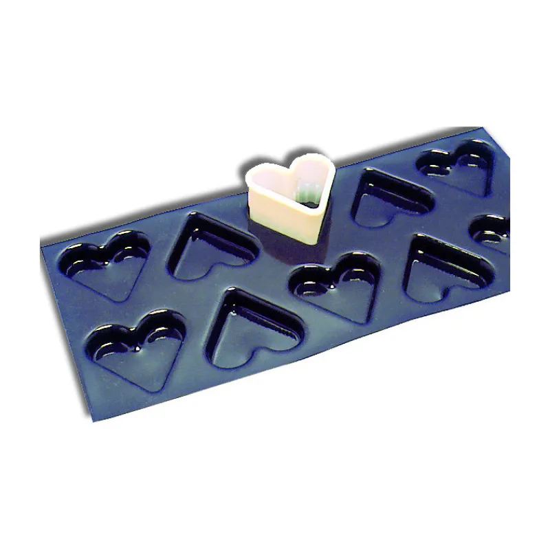 Découpoir en forme de Coeur cannelé pour la découpe de petits sablés ou de fonds utilisables notamment dans les plaques Flexipan (dimension des empreintes 5,3 x 4,8 cm).