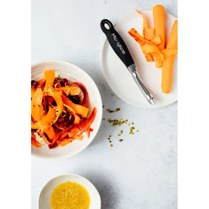Craquez pour cet économe à lame pivotante Specialty, le seul éplucheur à légumes qui vous accompagnera longtemps grâce à ses performances exceptionnelles et sa qualité Microplane.