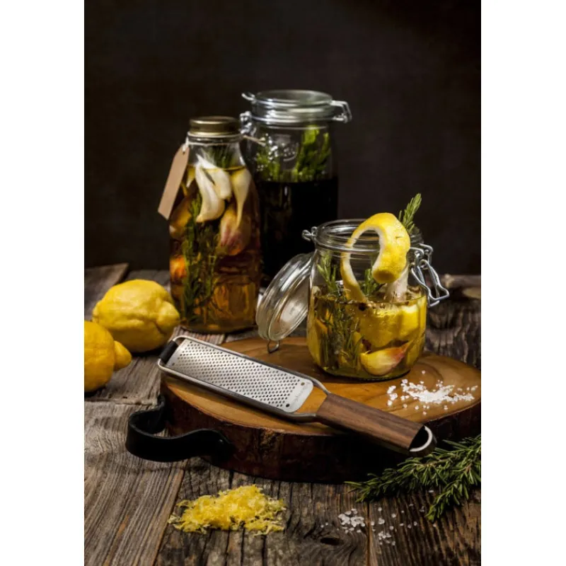 Ce zesteur agrumes ne se contente pas d’être fonctionnel : il est symbole de design. Son manche raffiné est fabriqué à partir de noyer du Kentucky, un bois de caractère spécialement sélectionné pour sa résistante à l’usure et aux temps. Associé à la lame en acier inoxydable de haute qualité, ce zesteur professionnel allie à la fois élégance et résistance.
