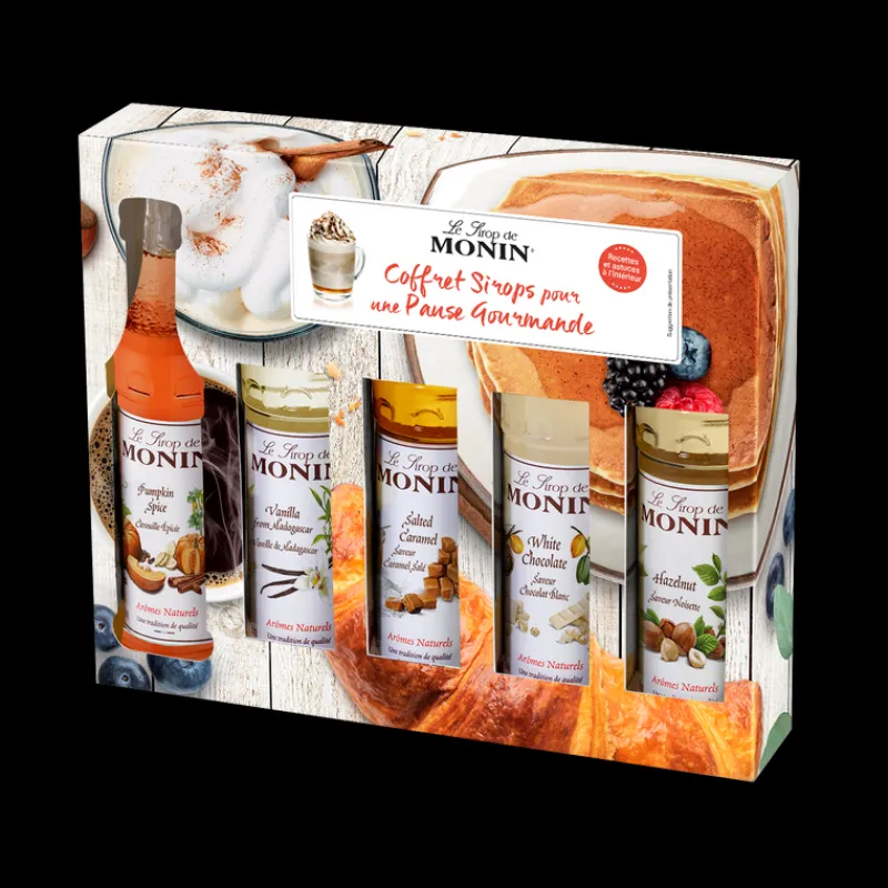 Multipliez les saveurs pour aromatiser vos boissons chaudes grâce à ce Coffret Dégustation Sirops pour Pause Gourmande 5 x 5 cl Monin.