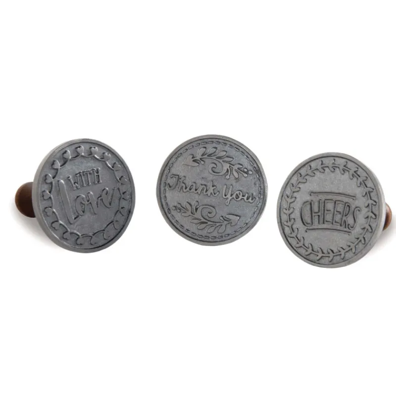 Composés de fonte d’aluminium et d’un manche en bois aussi élégant que confortable, les tampons Nordic Ware se distinguent par leur qualité et leur robustesse. Parés des messages tendres « With Love », « Thank You », et « Cheers », ces tampons sont utilisables pour bien des occasions. Montrez donc votre amour à vos proches avec des biscuits uniques grâce aux tampons greetings Nordic Ware.