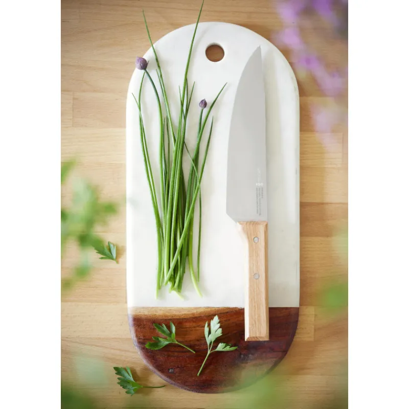 Le design de ce couteau de cuisine est travaillé pour être ergonomique : le manche offre une excellente préhension et la lame est stable. Instrument de découpe indispensable de toute cuisine, le couteau de chef Opinel est simple à aiguiser et à entretenir. Il vous accompagnera dans toutes vos recettes pour longtemps.
