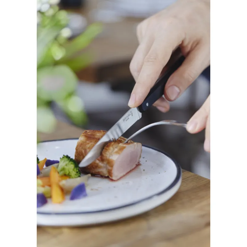 Opinel reprend la forme et l’aspect de ses couteaux de table avec un manche en bois, et les rend plus faciles d’utilisation en leur offrant un manche en polymère. Outre l’entretien simplifié par la compatibilité au lave-vaisselle de ces couverts de tables, les couteaux N°125 pro font preuve d’une maniabilité accrue.