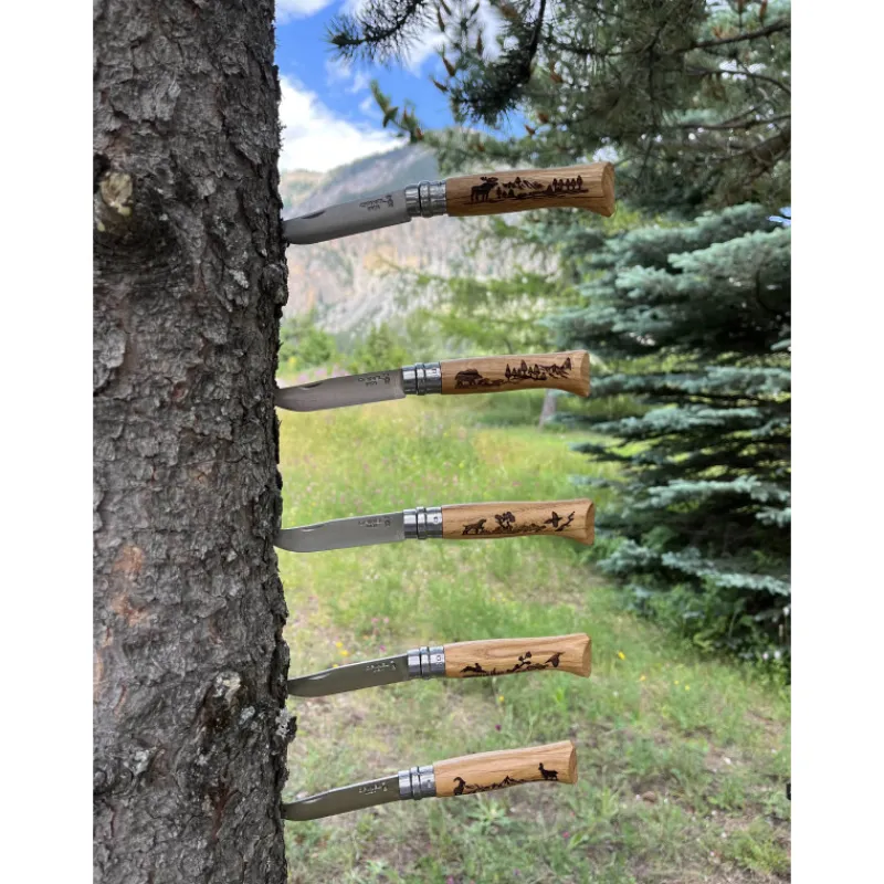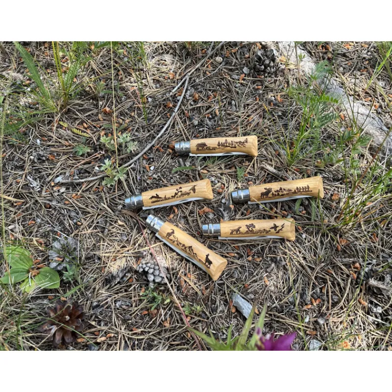 Retrouvez toute la collection Gravure Animalia en un seul et unique coffret Opinel. Les animaux de la région savoyarde sont réunis sur le manche de ces couteaux de qualité professionnelle. Le cerf, roi des forêts, lance son brame aux côtés du chamois des montagnes et du lièvre qui bondit à travers champs. C’est toute la faune de ces milieux naturels qui est figée sur ces couteaux de poche exceptionnels.
