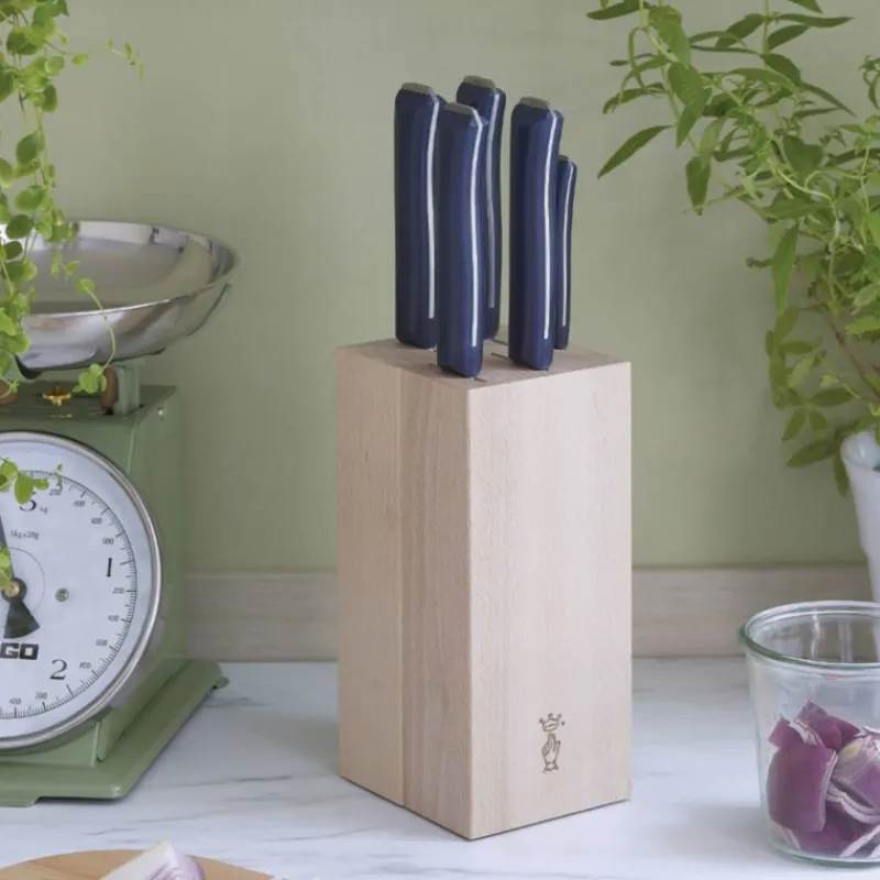 Cet ensemble de couteaux Opinel accompagné d’un bloc de rangement en bois habillera toutes les cuisines d’une touche authentique et élégante. Les 5 couteaux présents dans cet assortiment serviront à toutes les découpes : précision, grandes découpes, hacher, tailler, écraser, etc… C’est tout un monde de techniques et de recettes qui s’ouvriront à vous avec le bloc à couteaux Intempora.