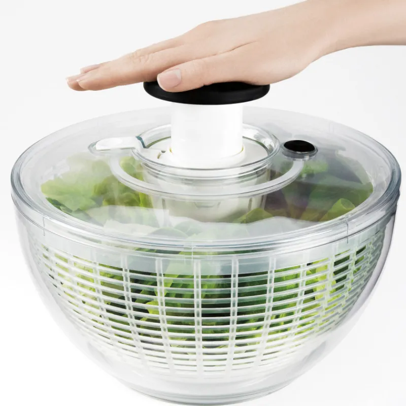 Faites-vous plaisir avec une belle essoreuse à salade Oxo ! Cette essoreuse Oxo simplifiera votre quotidien grâce à son système d’essorage à piston unique : quelques pressions suffisent pour une salade prête à déguster ! Vous pourrez ensuite conserver votre salade dans le bol de l’essoreuse Oxo au frais. Pour l’entretien, son couvercle démontable permet un nettoyage de l’essoreuse à salade complet et très facile.