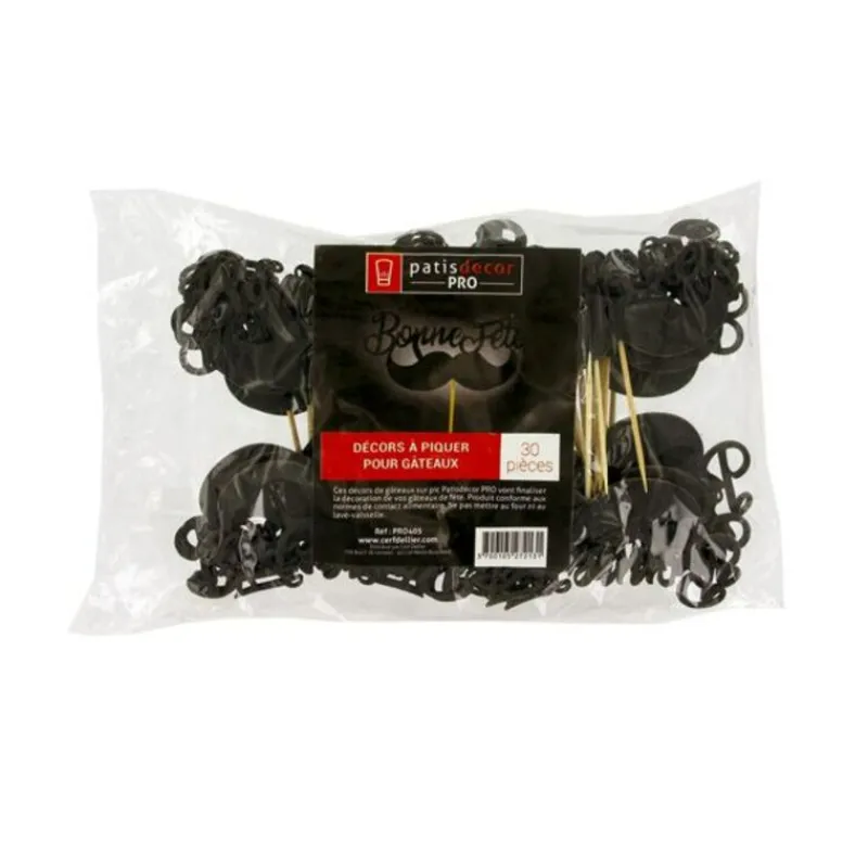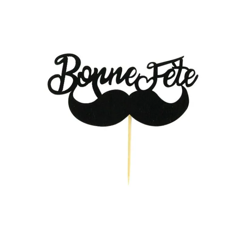 Cake Topper Bonne Fête Moustache sur Pic (x30) Patisdécor
