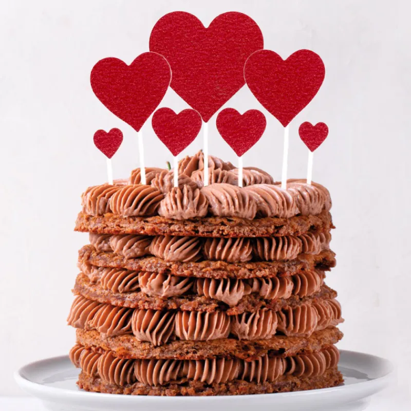 Le set de cake topper comprend une variété de tailles : 2 petits cœurs (2,5 cm), 2 cœurs moyens (3,5 cm), 2 grands cœurs (5,5 cm) et 1 très grand cœur (8 cm), ce qui permet de créer un joli dégradé de cœurs rouges jouant avec les proportions pour un effet visuel harmonieux et romantique. Fabriqués en papier carton et plastique, ces toppers gâteau sont à la fois légers et résistants, parfaits pour sublimer vos entremets et cupcakes.