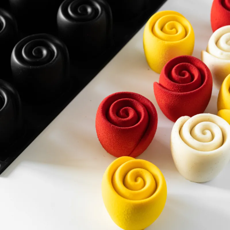 Laissez-vous séduire par le design de ce Moule Silicone Rose Volupté Ø 6 x H 5,5 cm (x20) Pavoflex, en collaboration avec Maxence Barbot.