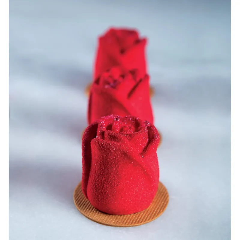 Offrez un bouton de rose à déguster avec ce Moule en Silicone Pavoflex. Comprenant 20 empreintes de 5,6 x 5,4 cm, ce Moule Silicone Rose est extrêmement souple et vous offrira un excellent rendement ainsi que des entremets à la forme parfaite.