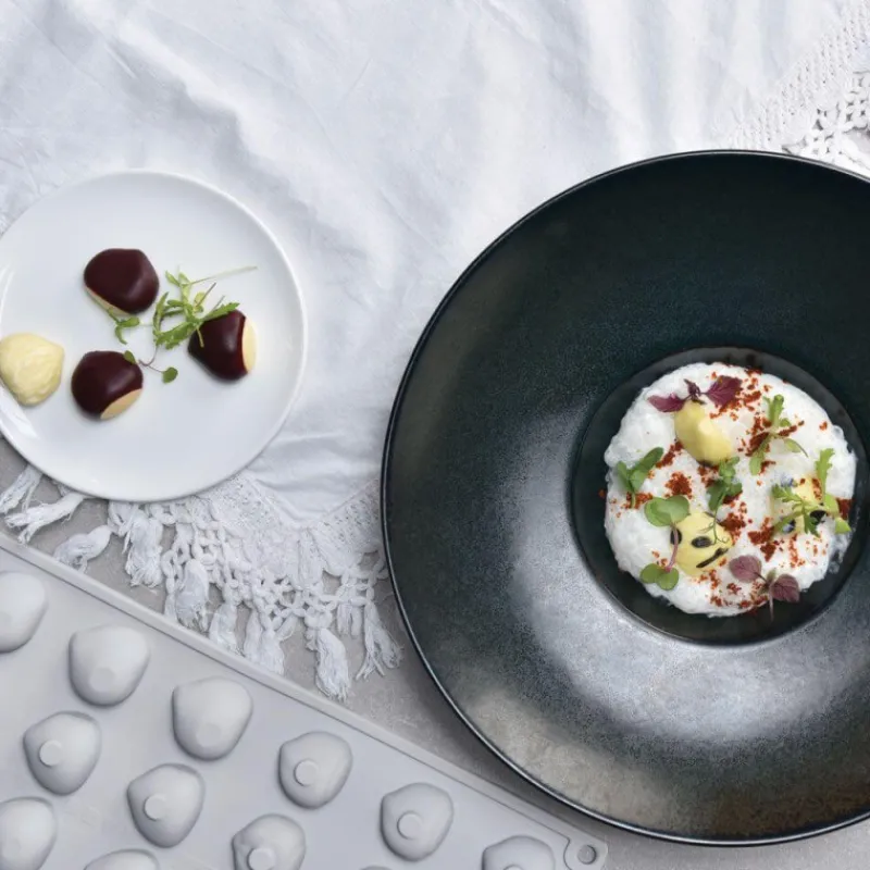 La forme ronde et généreuse de la châtaigne habillera avec élégance vos mets les plus fins, qu’ils soient salés ou sucrés. Prenez en main le moule silicone gourmand pour confectionner des décors plus vrais que nature. Que vous soyez un professionnel ou un amateur en termes de cake design, le moule gourmand châtaigne vous apportera saveurs et esthétique de façon simple et efficace. Profitez dès à présent de la possibilité de réaliser des décors et et gâteaux splendides avec le moule en silicone Pavoni.