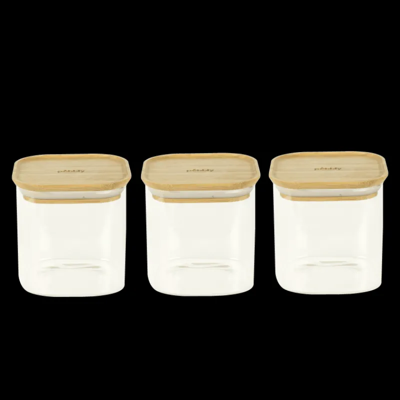 Lot 3 Boîtes de Conservation en Verre et Bambou Carré 800 ml Pebbly