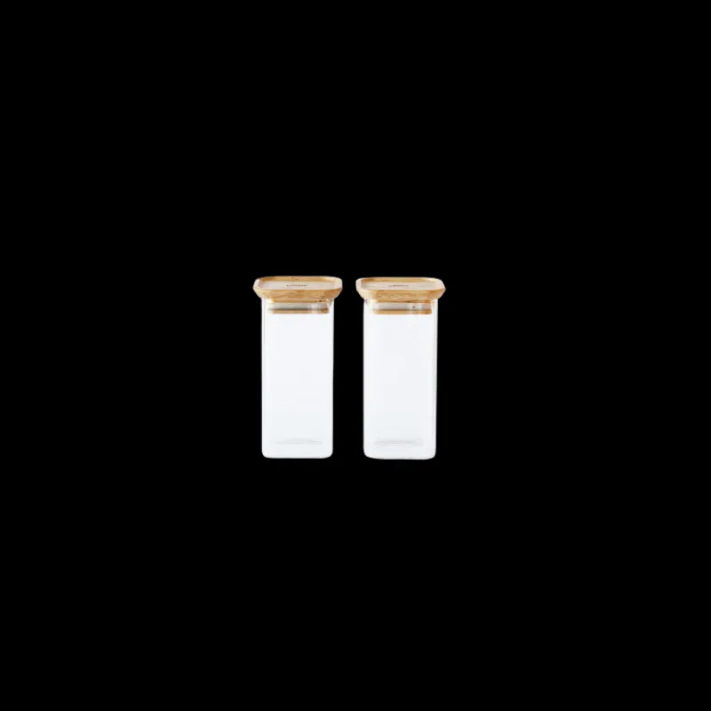 Lot de 2 Boites de Conservation Carrées en Verre et Bambou 320 ml Pebbly