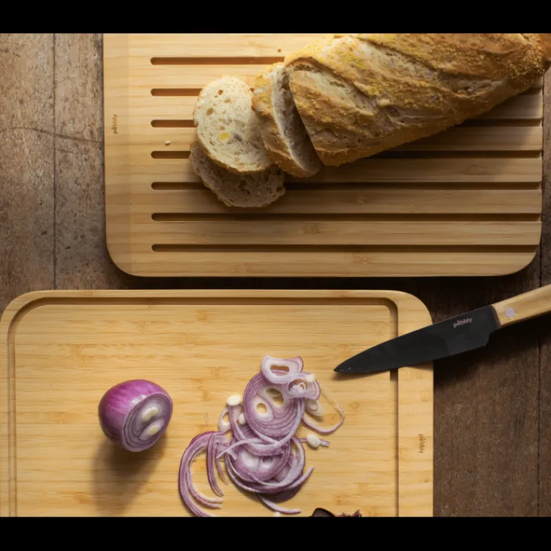 Cette planche 2 en 1 est idéale pour les étudiants ou les personnes ayant une cuisine minimaliste. Elle est parfaite pour ceux qui n’ont pas beaucoup d’espace en cuisine. Cette planche à découper Pebbly est un ustensile peu encombrant, sa double fonction ainsi que sa composition en bambou en font un outil polyvalent et écologique.