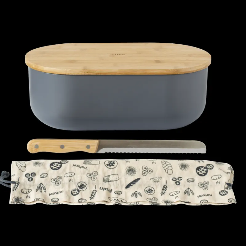 Set Boîte à Pain Ardoise Métal et Bambou 4 Pièces Pebbly