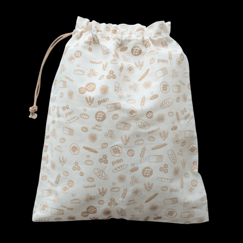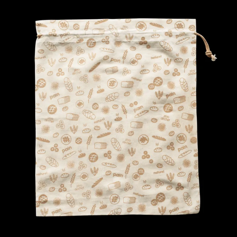 D’une dimension de 50 cm de long sur 45 cm de large, ce sac à pain dispose d’un cordon de serrage afin de garder vos aliments à l’abri de l’air et de l’humidité. Léger et résistant, ce sac réutilisable est lavable à la main en dessous de 30°C. Proposé dans un design naturel avec des motifs liés au thème du pain ce sac en coton est une parfaite alternative écologique aux sac en plastique.