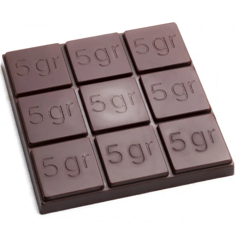 Croquez un carré de chocolat que vous aurez fait vous-même à l’aide du moule à chocolat en polycarbonate Pop Chocolat. Celui-ci mesure 27.5 x 17.5 x 2.6 cm et possède 3 empreintes qui représentent une tablette de 9 carrés de chocolat. Chaque empreinte du moule à chocolat en polycarbonate mesure 7.5 x 7.5 x 0.8 cm.