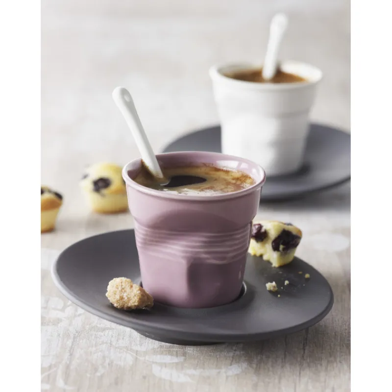 Les Froissés : Cette collection originale détourne un gobelet en plastique froissé en porcelaine. Les articles froissés Revol sont à la fois des accessoires de décoration mais également des ustensiles de cuisson! Le modèle du gobelet froissé Revol existe depuis l’année 2000 et n’a pas pris une ride!