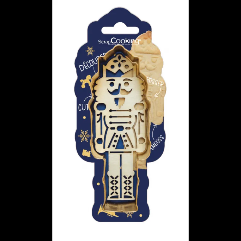 Revisitez un grand classique de l’opéra avec le kit à biscuit casse-noisette Scrapcooking. Composé d’un emporte-pièce en inox et d’un embosseur en bois, ce kit biscuit vous assure des biscuits à thème magnifiques. Pour un thème casse-noisette ou pour Noël, confectionnez des sablés reprenant l’élégante allure du prince envoûté en forme de casse-noisette.