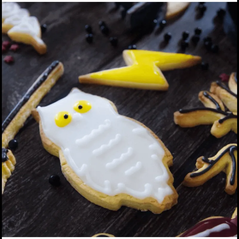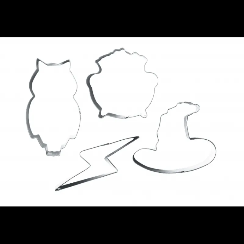 Le lot emporte-pièces comprend 4 découpoirs de formes différentes : une chouette, un chapeau de sorcier, un chaudron et un éclair. Fans de sorciers, tenez-vous prêt à créer des desserts inoubliables !