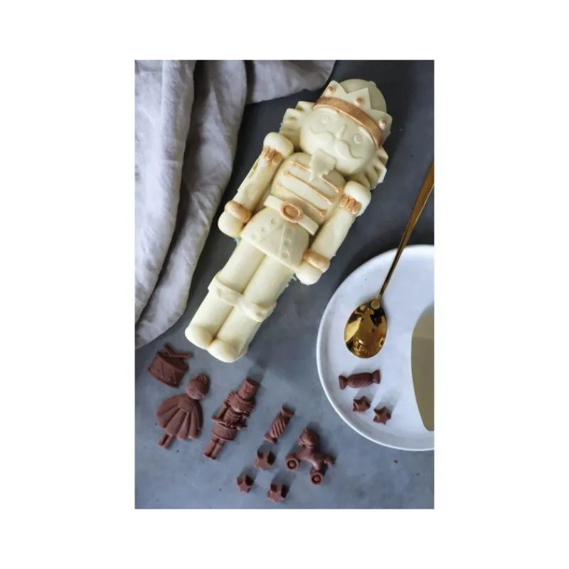 Retrouvez une magnifique réplique du célèbre et traditionnel Casse-Noisette de 33 cm, accompagné de cavités en forme de danseuse, de bonbon, de tambour, de cheval à bascule, d’étoile et de cœur.