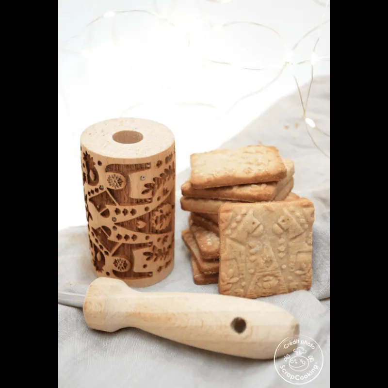 Offrez au Père Noël des biscuits uniques lors de son passage dans votre maison en les décorant de motifs chaleureux. Le mini-rouleau en bois Scrapcooking vous permet de confectionner des biscuits aussi bons que beaux. Le bois de hêtre dont est composé ce rouleau à pâtisserie est parfaitement adapté au contact alimentaire afin de vous garantir une cuisine saine. Il est également gravé de formes sur le thème de Noël afin de décorer vos biscuits pour les fêtes.