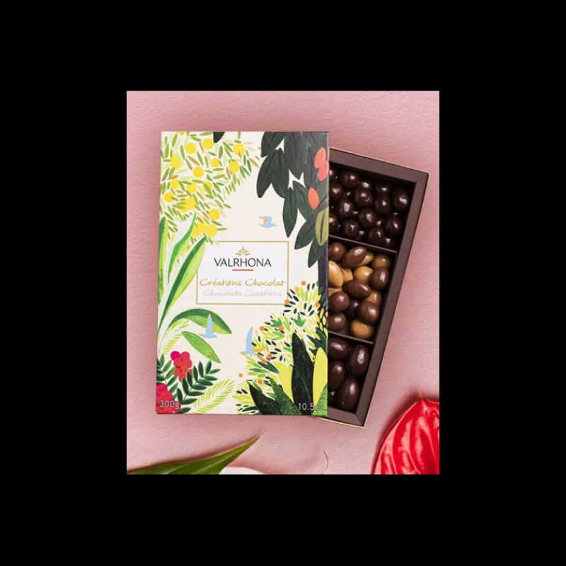 Découvrez le Coffret Assortiment Chocolat Noir, Lait, Dulcey 300 g Valrhona et laissez-vous séduire par l’expérience gustative ultime.
