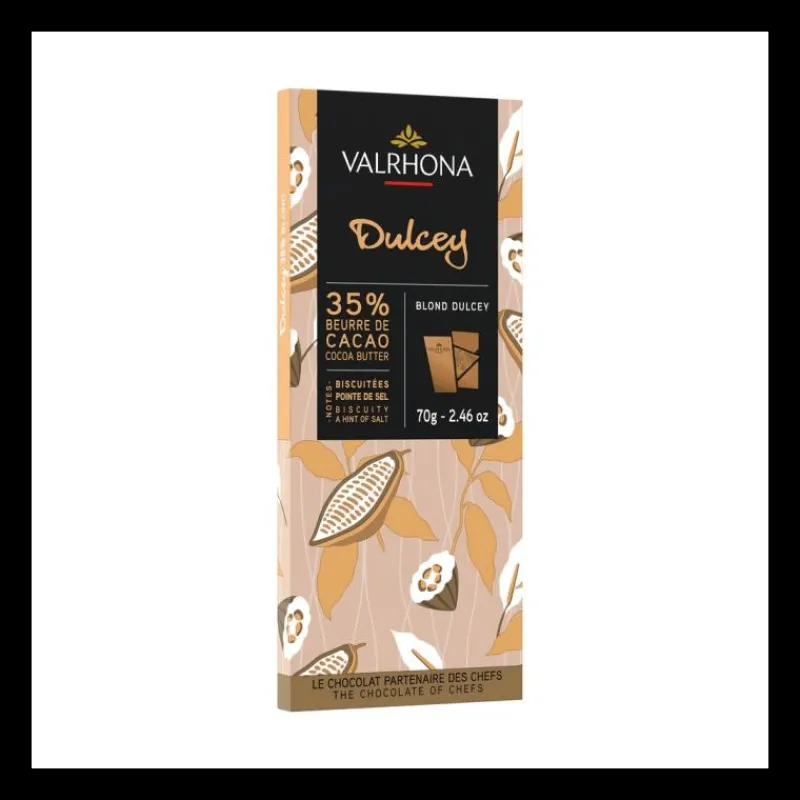 Craquez pour la création ultime de la gourmandise avec la Tablette de Chocolat Dulcey 35% 70 g Valrhona.