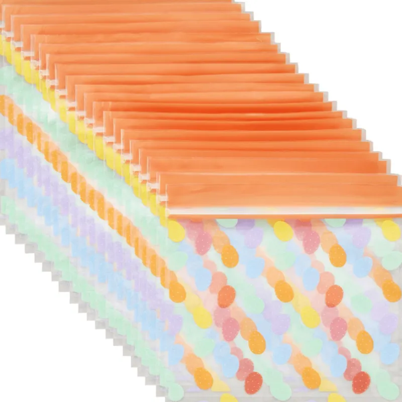 Que ce soit pour offrir vos douceurs où pour stocker votre récolte de la chasse aux œufs ces sachets bonbons transparents sont munis d’un zip afin de les refermer et ainsi les rendre hermétiques pour conserver vos chocolats de pâques plus longtemps.