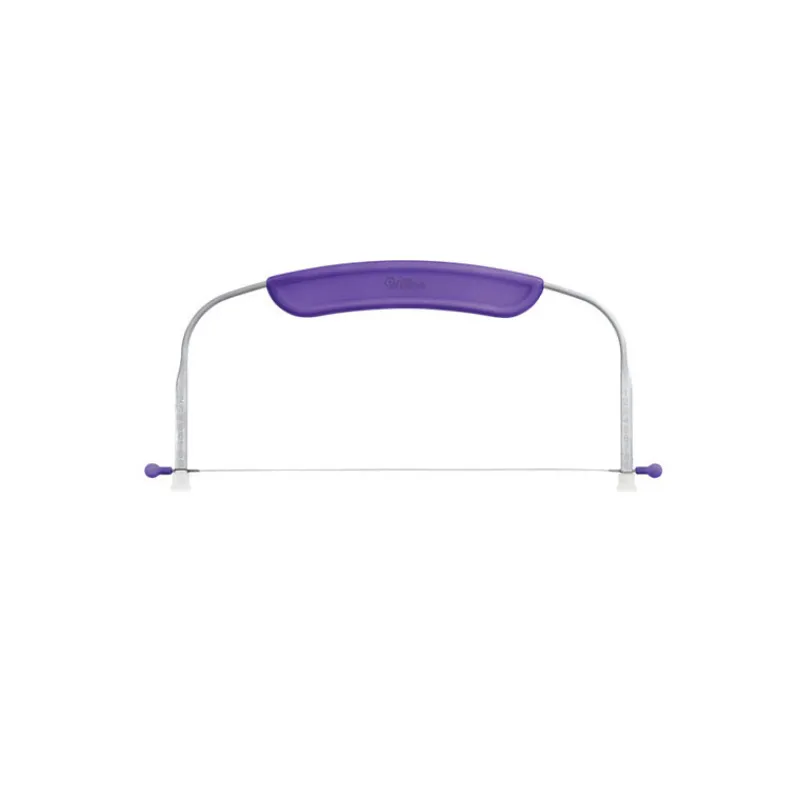 Le découpe génoise se compose d’un fil rigide que vous pouvez monter ou descendre selon la hauteur de votre gâteau. Positionnez-le devant votre génoise, ajustez la hauteur du fil, puis commencez à découper en faisant des mouvements de va-et-vient. Les pieds du découpe génoise doivent reposer sur le plan de travail. Cela vous apportera plus de stabilité et vous offrira une découpe nette et droite.